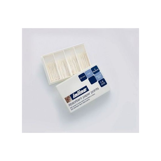 Punte di carta assorbenti, sterilizzate, normalizzate, arrotolate a mano.